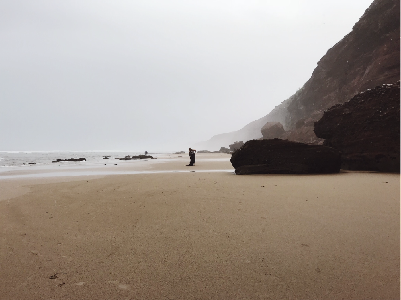 I want to remember how we woke up the next day in the open-air riad with the blue detailing on the walls. The walk along the beach. The dark grey tidepools to my left. The sea urchins, crabs, and fishermen. The mist that never lifted. The red, purple, deep magenta rocky cliffs to my right. How they twisted and turned in a protective loom from above. None of us speaking, quiet smiles instead. The man smoking hashish in the quaint little cave and the many warnings of the rising tides. The reminder of how quickly the ocean’s beauty can turn deadly.
